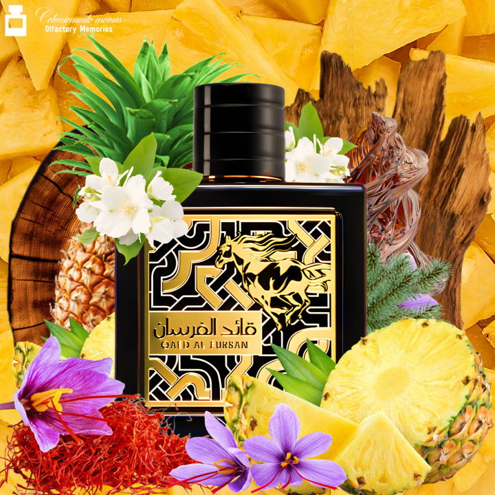 El perfume Qaed Al Fursan es una elección distintiva para quienes aprecian las fragancias aromáticas con un toque sofisticado. Se abre con notas de salida refrescantes y exóticas de piña y azafrán, que captan tu atención desde el primer momento. En el corazón, la composición se enriquece con jazmín y bálsamo de abeto, aportando profundidad floral y toques amaderados. El final es impactante, con ámbar, cedro y madera de agar, ofreciendo una estela duradera y envolvente.