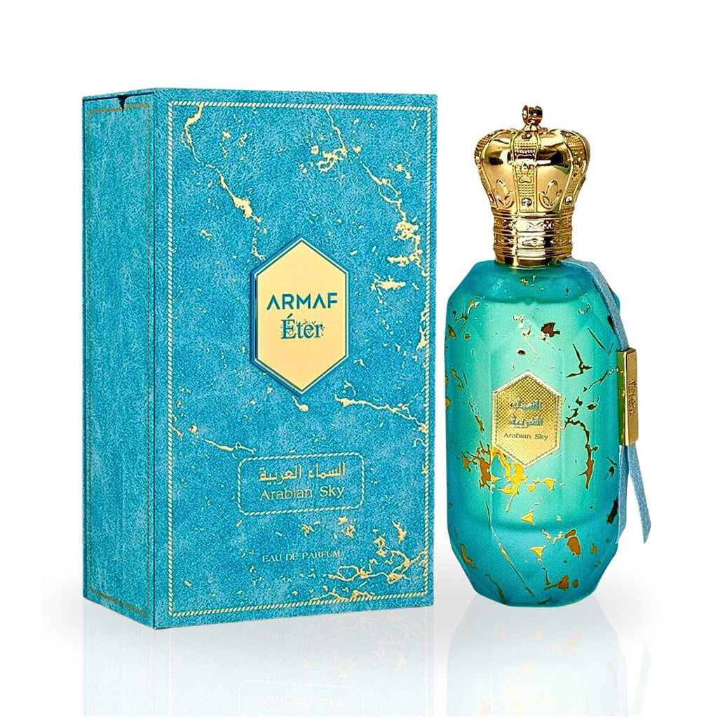 El perfume Arabian Sky es una fragancia unisex amaderada y aromática, vibrante y sofisticada. Sus notas de salida aportan la energía del aceite de naranja, piña, pimienta y cítricos como el limón, el pomelo y la bergamota. En el corazón, geranio, lavanda, ylang ylang y caramelo crean un contraste entre lo floral elegante y lo dulce envolvente. Finalmente, almizcle, ámbar, cedro, cuero, vetiver y pachulí conforman un fondo impactante y equilibrado, ideal para quienes buscan presencia y versatilidad.