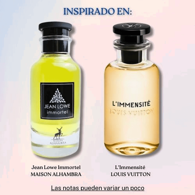 Jean Lowe Immortal de Maison Alhambra es una fragancia de la familia olfativa Oriental para Hombres. Esta fragrancia es nueva. Jean Lowe Immortal se lanzó en 2023. Las Notas de Salida son jengibre, toronja (pomelo) y bergamota; las Notas de Corazón son romero, notas acuáticas, salvia y geranio; las Notas de Fondo son ambroxan, ámbar y ládano.