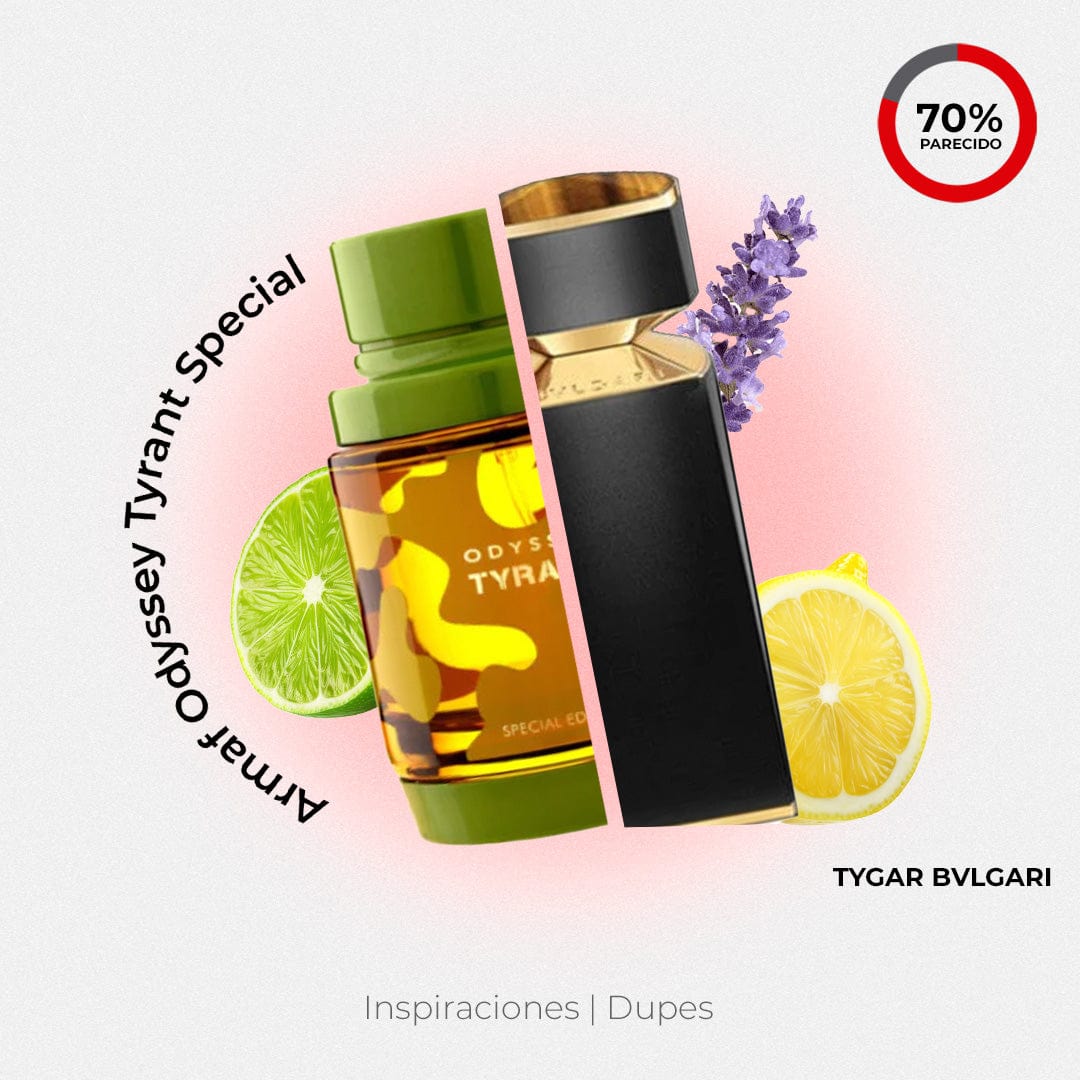Odyssey Tyrant Edición Especial es una potente y sofisticada fragancia oriental amaderada para hombre. Sus notas de salida combinan la frescura del pomelo con vibrantes cítricos. En el corazón, el geranio, la pimienta, la lavanda y el elemí crean un marcado contraste entre notas florales, especiadas y aromáticas. Finalmente, el ambroxán, el vetiver, el cedro y las notas amaderadas crean una base intensa y duradera, ideal para hombres que buscan presencia y elegancia en una fragancia imponente.