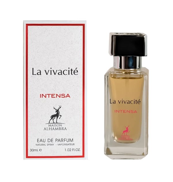 Vivacité Intensa combina notas de salida de grosella negra y pera jugosa, un corazón floral de jazmín e iris, y un fondo cremoso de vainilla, pachulí y praliné. El haba tonka aporta calidez y elegancia a la fragancia. Con una larga duración y una estela sofisticada, es perfecta para ocasiones especiales y para quienes disfrutan de perfumes impactantes y femeninos.
