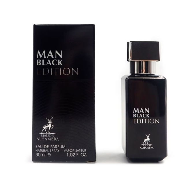 Perfume Man Black Edition es una fragancia aromática amaderada para hombre que irradia poder y sofisticación. Las notas de salida combinan la calidez de la pimienta rosa, la delicadeza de la violeta, la vivacidad de la naranja y el toque exótico de la nuez moscada, creando una salida cautivadora. En el corazón, pachulí, jazmín, papiro, notas terrosas y dulces se fusionan para ofrecer una profundidad rica y compleja. El fondo es intenso y llamativo, con acordes de tabaco, haba tonka, incienso, cedro y almizcle.