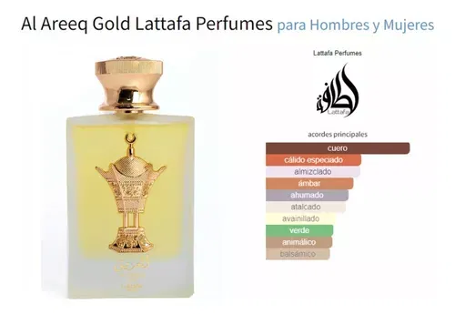 El perfume Lattafa Al Areeq Gold es una experiencia lujosa e inmersiva, perfecta para quienes buscan sofisticación y distinción. Las notas altas de té negro y azafrán crean una apertura única y cautivadora. Gamuza, cuero e incienso son los aromas de misterio y profundidad en el corazón. Vainilla, almizcle y ámbar hacen de este viaje sensual y cautivador perfecto para un evento especial.