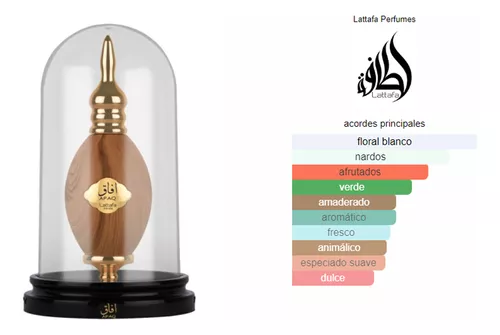 El perfume Afaq Gold es una fragancia unisex sofisticada y atractiva. Las notas altas de cassis y pera brindan una apertura fresca y afrutada. En el corazón, Nardo y Jazmín aportan un toque floral elegante y seductor. Terminando con Cachemira y Sándalo, la fragancia gana profundidad y calidez, creando una experiencia olfativa inolvidable. Ideal para quienes buscan un perfume versátil y llamativo.
